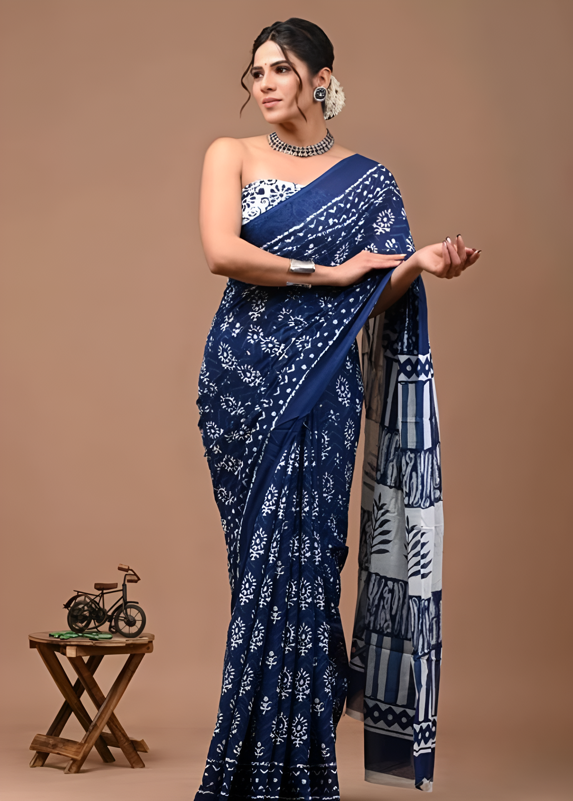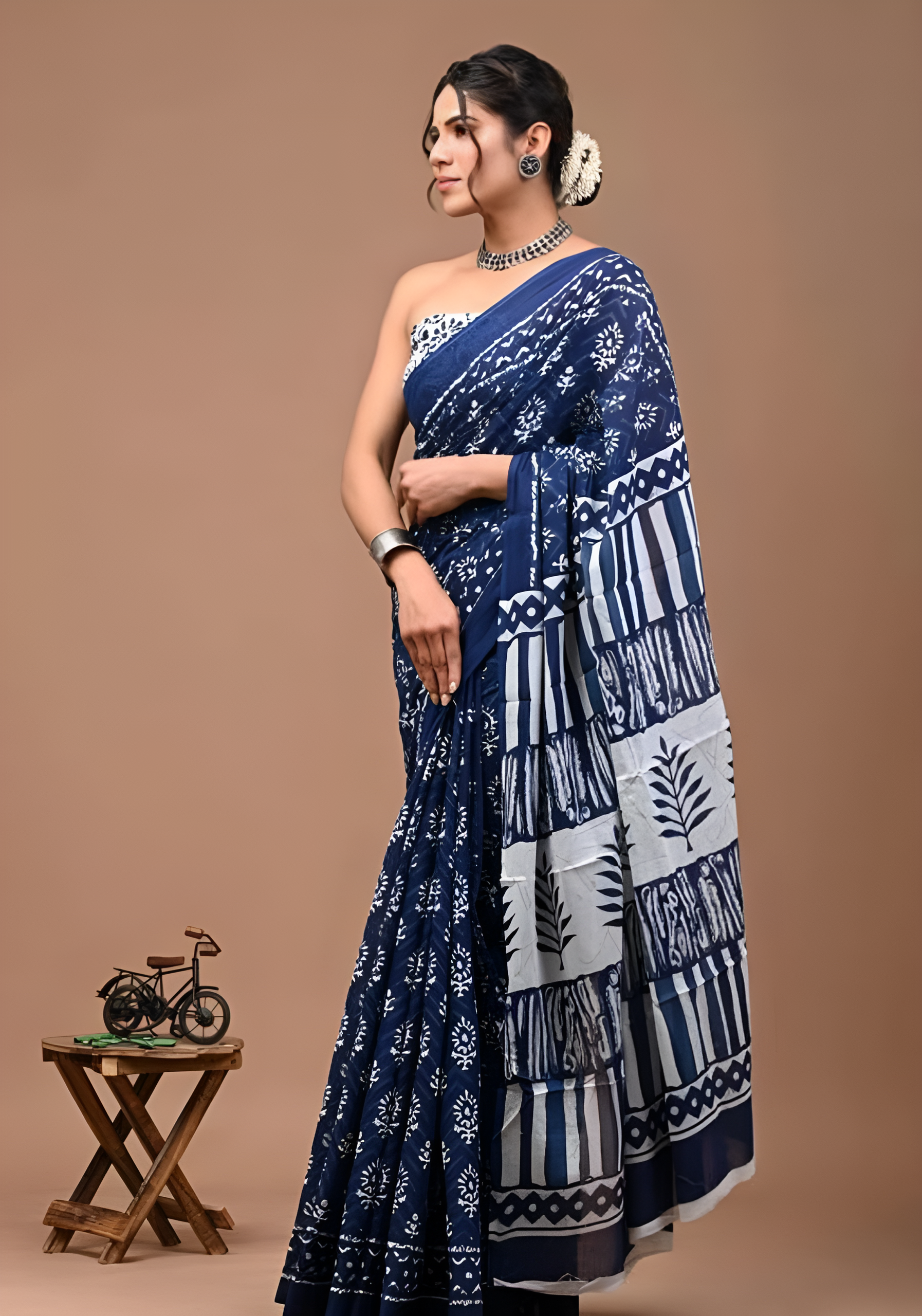 Name : Jaipuri Hand Block Printed Soft Cotton Mulmul Saree ,Sanganeri Cotton Malmal Saree, Bagru Cotton Saree, Batic / Batik Print Cotton saree In Super Fine 92*80 Fabric Quality With Attached Blouse Piece for Woman